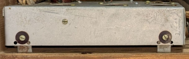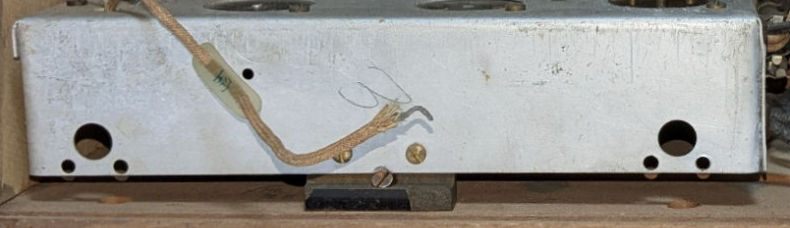 この、並べた順に変化したと推定しているが、当初は局型に似た樹脂製のスペーサで支えているが、スペーサと、1か所あたりねじとナットを2組使用する事から、簡略化のために後部だけ絶縁ワッシャとL形の取付金具を使用する方式に変更された。最後には中央部に絶縁スペーサを取り付け、木ねじ1本でキャビネットに固定する方法になった。このスペーサは本来樹脂製だが、木片も使われている。次に裏蓋を見てみると、