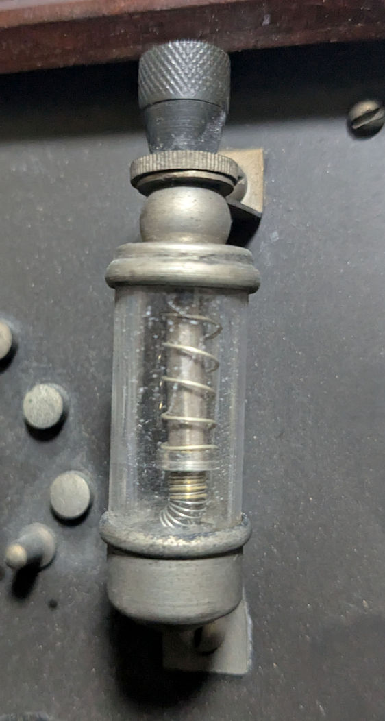 本機は、探り式鉱石検波器が付いた状態で発見された。この状態ではふたが閉まらず、明らかにオリジナルでないと判断できるので、同時代の固定鉱石のホルダに交換した。