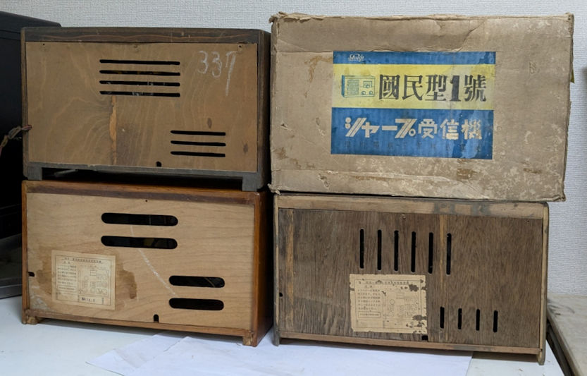 シャープ国民型1号の裏蓋のバリエーション(右上は梱包箱)