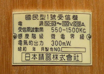 放送局型受信機の完成に貢献した戦前からの大手メーカ、日本精器の国民型1号受信機。