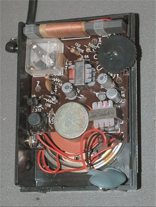 教材用3球ラジオはキットの形で各社から発売されていた。通常はこのようにシャーシのみを組み立てるもので、パネルやキャビネットは用意されないことが多かった。これは1960年代の製品だが、組み立てられずに残っていたものを1978年頃に組み立てたもの。
