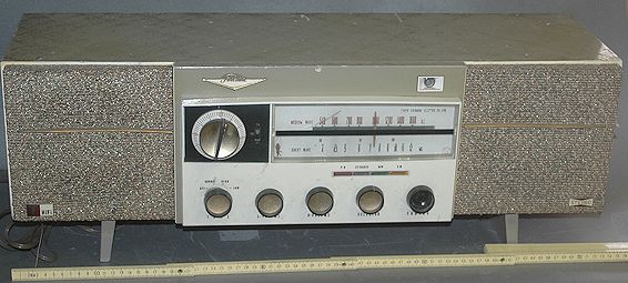 真空管式ラジオ末期の高級受信機。2スピーカで中波/短波とFMのダイヤルを左右対称に配置している。一見ステレオのように見えるがモノラルである。この頃流行した「ステレオ風」商品のひとつである。この頃には半導体製造技術が進歩し、回路が複雑なFM付ラジオには半導体整流器が使われるようになった。