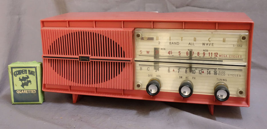 真空管ラジオ最後期の5球スーパー。HITACHIのロゴが新しくなっている。同社はこの後、少し小型のトランジスタ化されたルームラジオを継続販売する。