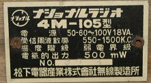 National Model 4M-105 4 tubes Regenerative 1946? Matsushita Electric Ind. Co., Ltd. Wireless MFG. Dept.