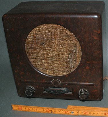 ここに紹介していないが、電池式のVE301Bも木製キャビネットである。RE034-RE-034-RES174dの3球式だったが、1937年にKC1-KC1-KL1を使ったVE301BIIに変更された(デザインは変更なし)。
